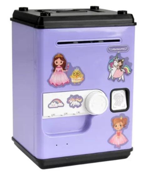 Watch your child's eyes light up with this fun and educational piggy bank. It teaches them about saving money and responsibility. The child can save both coins and notes in this cute password protected Piggy Bank.